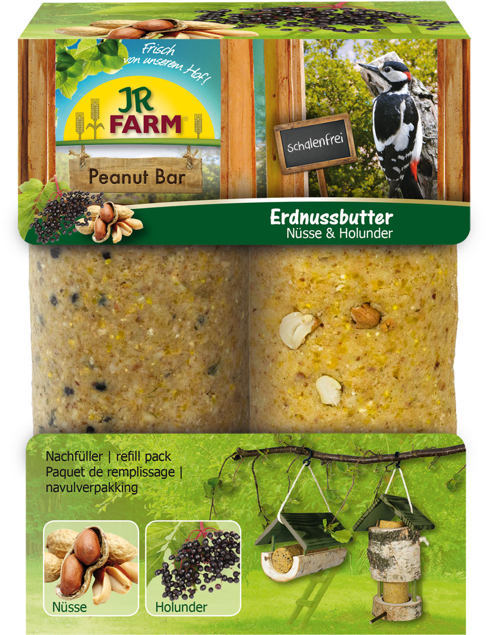 Das ?lange? Pickvergnügen für alle Wildv&ouml-gel mit energiereichen ganzen Nüssen oder fruchtigen Holunderbeeren. Die JR FARM Erdnussbutter wurde speziell für die Fütterung von Wildv&ouml-geln entwickelt und ist natürlich frei von zugesetztem Salz. Besonders hochwertige und schalenfreie Rezeptur! Nicht für den menschlichen Verzehr geeignet.
